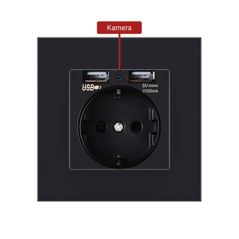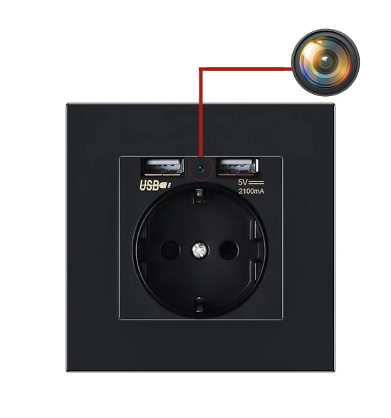 Black standard EU socket with built-in Full HD hidden camera
